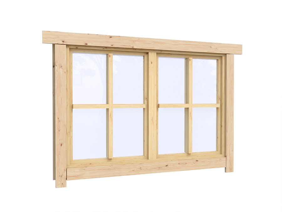 • Деревянные окна, стекло 4 мм., одинарные. Обработка бесцветным антисептиком. Фурнитура;